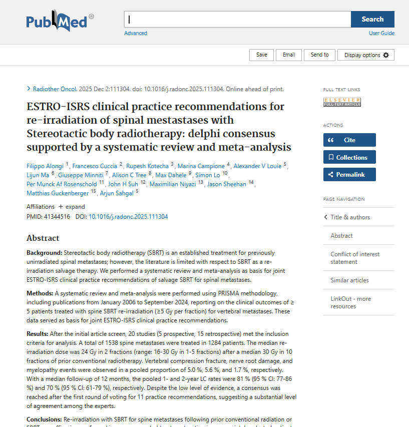 Filippo Alongi, Francesco Cuccia , Rupesh Kotecha , Marina Campione , Alexander V Louie , Lijun Ma , Giuseppe Minniti , Alison C Tree , Max Dahele , Simon Lo , Per Munck Af Rosenschold , John H Suh, Maximilian Niyazi, Jason Sheehan, Matthias Guckenberger, Arjun Sahgal